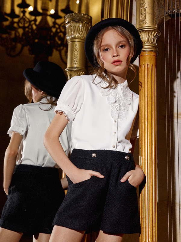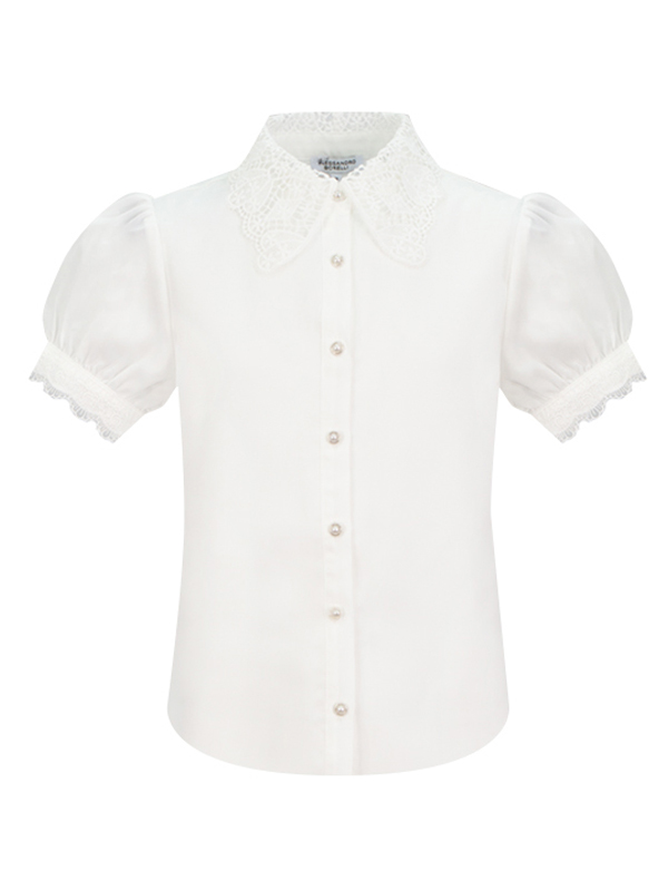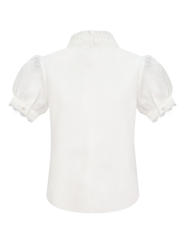 Блузка ALESSANDRO BORELLI для девочек – идеальное решение для школьных будней. Модель свободного кроя с коротким рукавом декорирована застежкой на пуговицы, кружевным воротником, а также съемным декором у воротника. Блуза с трикотажной спинкой будет идеально сочетаться как с брюками, так и с юбкой или сарафаном. Блуза выполнена из качественной хлопковой ткани, что позволяет с комфортом посещать занятия или торжественные мероприятия. За ней не нужно постоянно ухаживать, после стирки ткань не теряет форму и цвет. Блуза подчеркнет индивидуальность Вашего ребенка. В нашем каталоге представлены модели для детей от 6 до 16 лет.