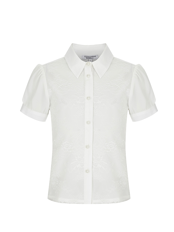 Блузка ALESSANDRO BORELLI для девочек – идеальное решение для школьных будней. Модель с коротким рукавом декорирована кружевом, отложным воротником, манжетами на рукавах и застежкой на пуговицы. Блузка будет идеально сочетаться как с брюками, так и с юбкой или сарафаном. Блуза выполнена из качественной ткани с большим добавлением вискозы, что позволяет с комфортом посещать занятия или торжественные мероприятия. За ней не нужно постоянно ухаживать, после стирки ткань не теряет форму и цвет. Блуза подчеркнет индивидуальность Вашего ребенка. В нашем каталоге представлены модели для детей от 6 до 16 лет.