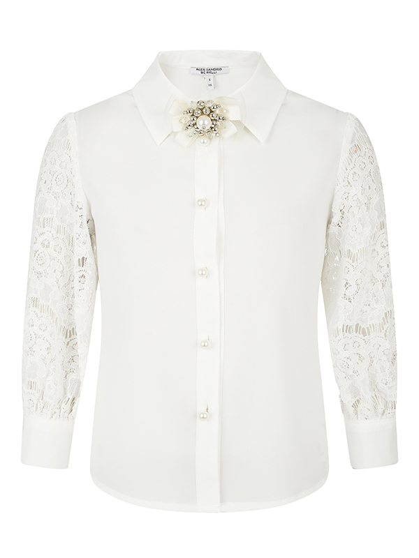 Блузка ALESSANDRO BORELLI для девочек – идеальное решение для школьных будней. Модель декорирована кружевным рукавом 3/4, съемной брошью, отложным воротником, манжетами и застежкой на пуговицы. Блузка будет идеально сочетаться как с брюками, так и с юбкой или сарафаном. Блуза выполнена из качественной ткани с большим добавлением вискозы, что позволяет с комфортом посещать занятия или торжественные мероприятия. За ей не нужно постоянно ухаживать, после стирки ткань не теряет форму и цвет. В нашем каталоге представлены модели для детей от 6 до 16 лет.