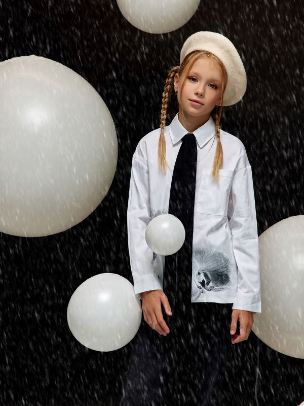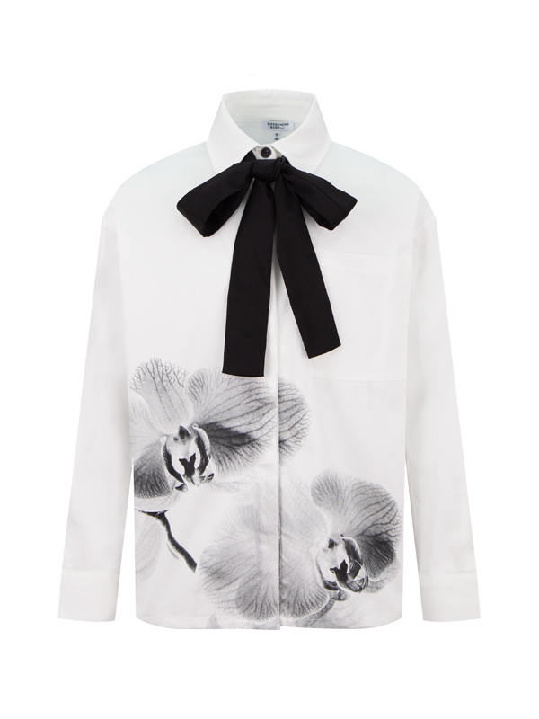 Рубашка ALESSANDRO BORELLI для девочек выполнена в стиле коллекции Orchid. Модель в белом цвете отличается элегантным и стильным дизайном. Рубашка украшена крупным черно-белым принтом в виде орхидеи на передней части. У рубашки классический воротник и черный съемный бант, придающий изысканность и элегантность. Длинные рукава и аккуратный фасон делают ее подходящей как для повседневного, так и для более праздничного мероприятия. Рубашка для девочки выполнена из качественного материала с большим добавлением хлопка. Не боится частых стирок: ткань не выцветает и не заламывается.