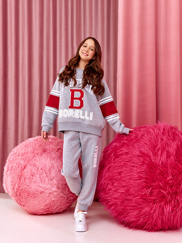 Спортивные брюки для девочки Alessandro Borelli — универсальная модель для активных будней и отдыха. Изделие выполнено из качественной хлопковой ткани, которая сохраняет тепло. Дизайн отличается лаконичностью и современным стилем: широкий эластичный пояс со шнурком для регулировки посадки и манжеты на резинке. Контрастный принт с вертикальной надписью BORELLI придаёт образу динамику и подчёркивает спортивный характер бренда.