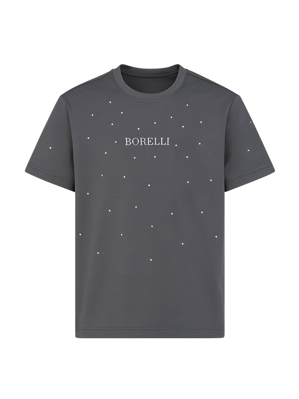 Футболка для девочки Alessandro Borelli — лаконичная и утончённая модель для тех, кто ценит элегантный минимализм. Изготовлена из мягкого хлопкового трикотажа премиум-качества, приятного к телу и обеспечивающего комфорт в течение всего дня.Темно-серый оттенок дополнен деликатными рассыпанными стразами, создающими эффект лёгкого сияния. На груди — лаконичная надпись BORELLI в классическом шрифте, подчёркивающая стиль и фирменный характер бренда.