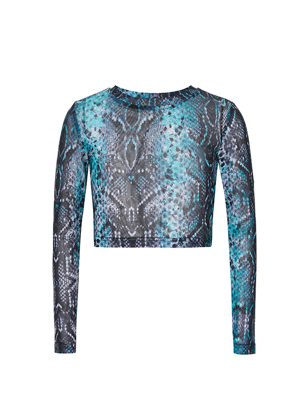 Лонгслив ALESSANDRO BORELLI для девочки идеально сочетается как с другими моделями из коллекции Snakes, так и с базовыми джинсами или шортами. Укороченная модель украшена эффектным змеиным принтом в бирюзовом цвете, что придаёт изделию изысканный вид. Лонгслив имеет круглую горловину и длинные рукава. Строго ухода модель не требует: после стирки рисунок останется таким же ярким. Подходит для повседневных образов или особых случаев, добавляя яркость в гардероб.