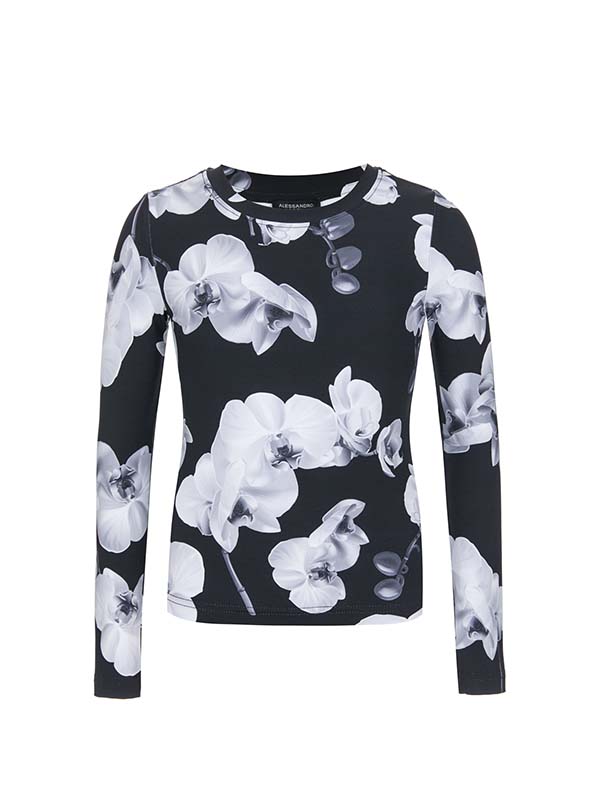 Лонгслив ALESSANDRO BORELLI для девочек, как и другая одежда из коллекции Orchid, имеет яркий и броский дизайн. Черный лонгслив с длинными рукавами украшен крупными белыми орхидеями. Принт расположен по всей поверхности, создавая контрастный и элегантный вид. Лонгслив имеет длинные рукава и округлый вырез горловины. Модель выполнена из качественной эластичной ткани, которая не требует сложного ухода, легко стирается и не заминается. Лонгслив – отличный выбор для уверенных девочек, которых заботит не только дизайн, но и комфорт. Подчеркивает чувство вкуса и индивидуальность, поэтому незаменим для тех, кто любит выражать себя через одежду.