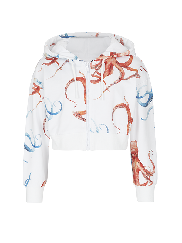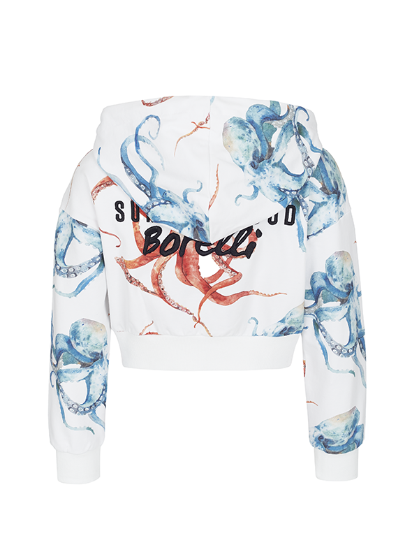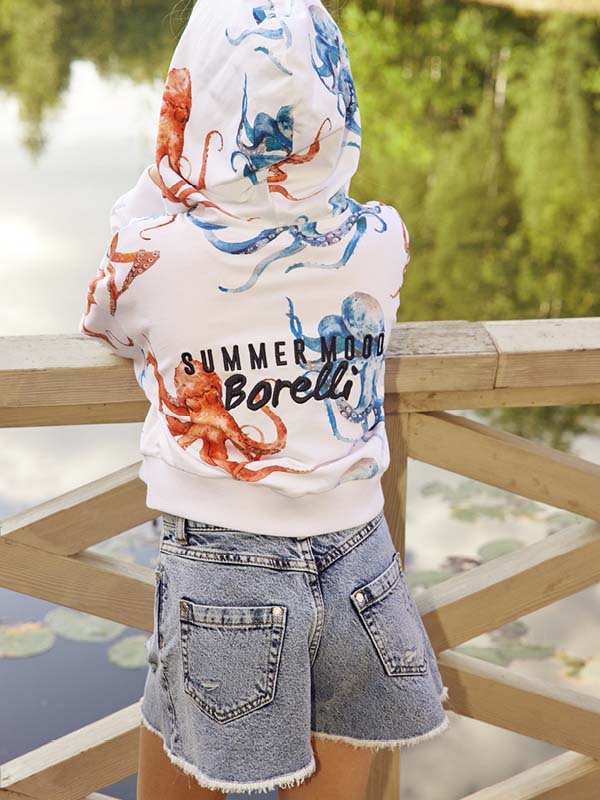 Яркая и стильная толстовка – идеальный выбор для вашего ребенка. Толстовка выполнена в единой стилистике с остальной одеждой из коллекции SEA OCTOPUS: морские мотивы на светлом фоне. Толстовка ALESSANDRO BORELLI для девочек выглядит ярко, но в то же время стильно. Модель декорирована уникальной вышивкой на спинке, имеет глубокий капюшон с кулиской, манжеты и застежку на молнии. Толстовка прекрасно сочетается как с другими моделями коллекции, так и с любой футболкой или брюками. Толстовка выполнена из качественного хлопка. Мягкая ткань не стесняет ребенка и позволяет отдыхать, заниматься спортом или просто гулять с комфортом. За ней не нужно постоянно ухаживать, после стирки принт не выцветает, а ткань не заламывается. В нашем каталоге представлены модели для детей от 6 до 16 лет.