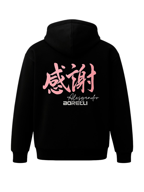 Толстовка для девочки Alessandro Borelli — стильная и универсальная модель, сочетающая минимализм и креативные акценты. Выполнена из качественной хлопковой ткани, которая обеспечивает комфорт и тепло. Спереди — лаконичный дизайн с удобной молнией и накладными карманами, а главный акцент размещён на спинке: крупный розовый принт с иероглифами и фирменной надписью Alessandro Borelli, придающий изделию современное настроение и динамичный характер.