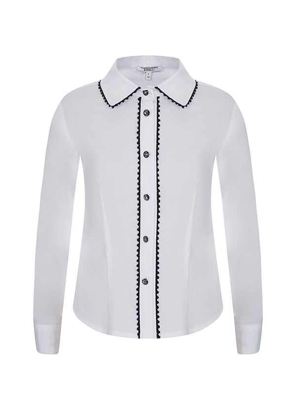 Блузка ALESSANDRO BORELLI для девочек – идеальное решение для школьных будней. Модель с длинным рукавом декорирована контрастным кружевом, отложным воротником, манжетами и застежкой на пуговицы. Блузка будет идеально сочетаться как с брюками, так и с юбкой или сарафаном. Блуза выполнена из качественной ткани с большим добавлением хлопка, что позволяет с комфортом посещать занятия или торжественные мероприятия. За ей не нужно постоянно ухаживать, после стирки ткань не теряет форму и цвет. В нашем каталоге представлены модели для детей от 6 до 16 лет.