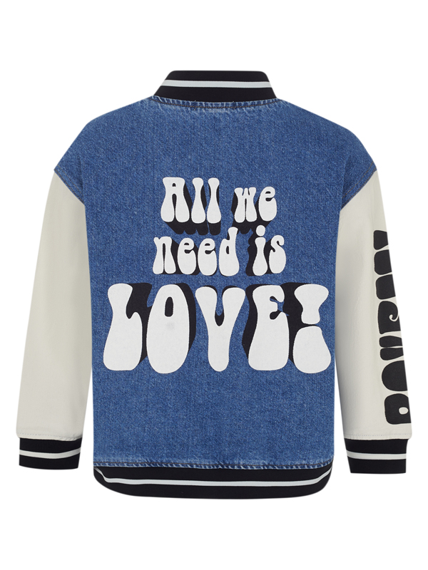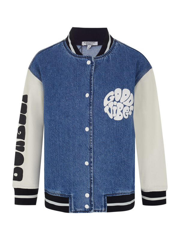 Бомбер – стильная куртка для активных детей. Изготовленный из качественного хлопка он обеспечивает комфорт и долговечность. Как и остальная одежда из коллекции Love vibes, бомбер украшен уникальным принтом, который создает свежий и яркий образ. Джинсовка имеет классический фасон с застежкой на кнопки, манжетами на рукавах, планкой по низу изделия, что добавляет ей спортивный и современный вид. Она идеально сочетается с джинсами, леггинсами или спортивными брюками. Бомбер подойдет для детей любого возраста: в нашем каталоге представлены модели для детей от 6 до 16 лет.