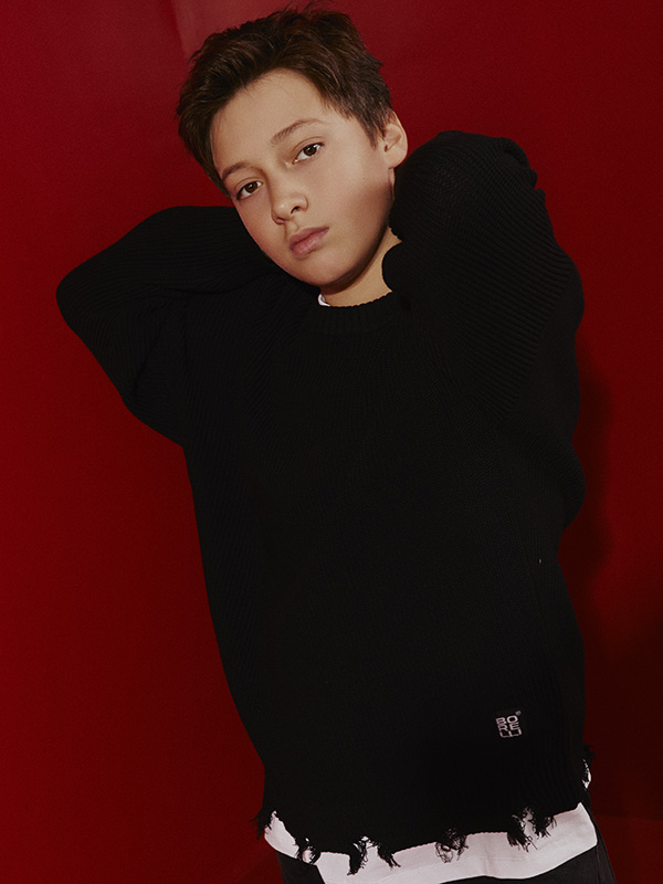 Джемпер для мальчика Alessandro Borelli — стильная модель с актуальным уличным характером. Изготовлен из мягкого трикотажа средней плотности, который обеспечивает комфорт и тепло в прохладную погоду. Особенностью модели являются декоративные “рваные” края по низу изделия и рукавам, создающие модный гранж-эффект. Прямой силуэт и классическая круглая горловина делают джемпер универсальным элементом гардероба.
